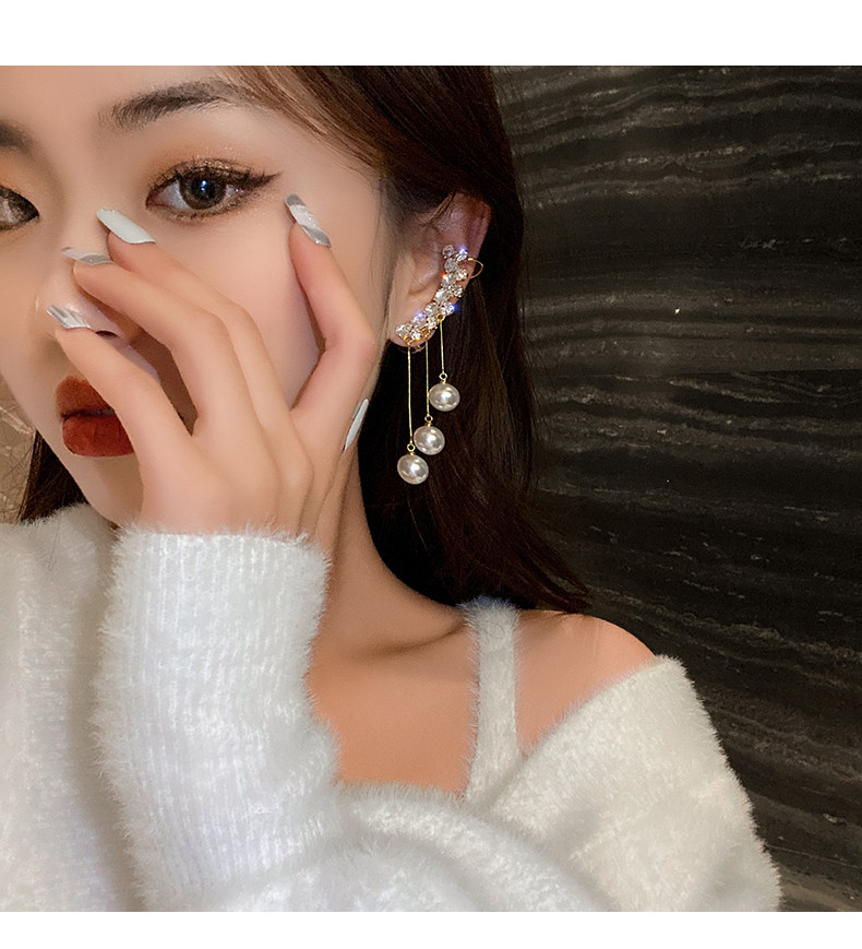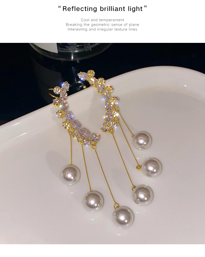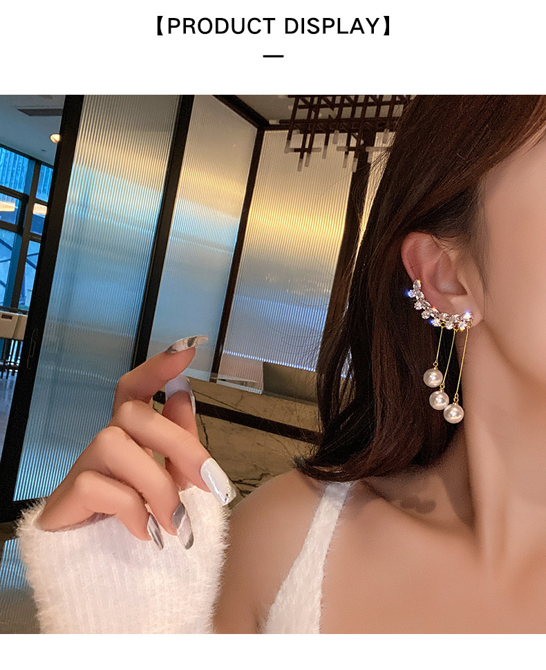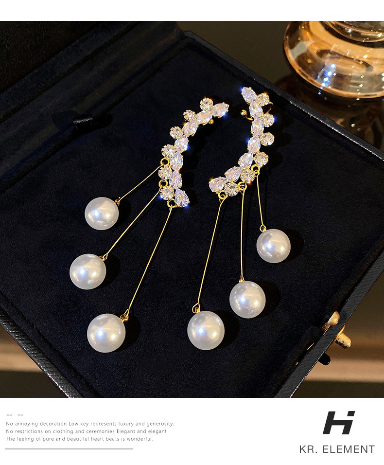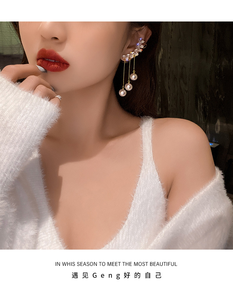 【真金电镀】 韩国珍珠流苏耳环长款耳钉简约小众设计感女气质耳饰耳钉