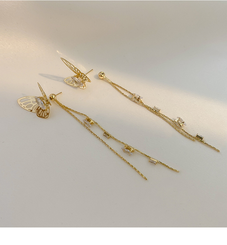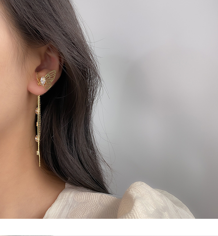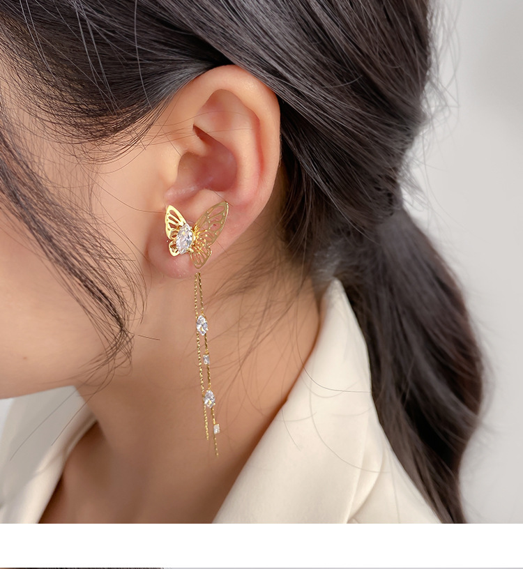 【真金电镀】 韩国纯银针立体蝴蝶流苏耳环长款超仙气质网红耳饰