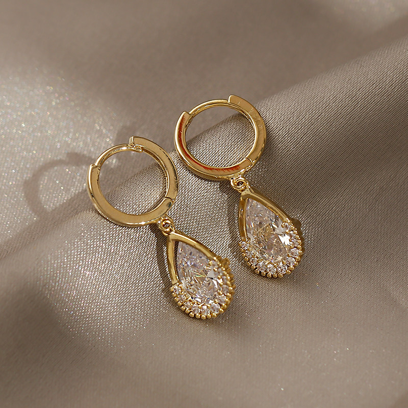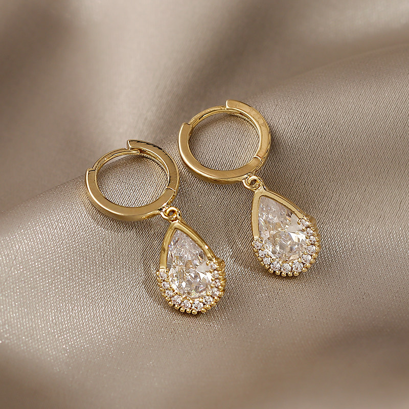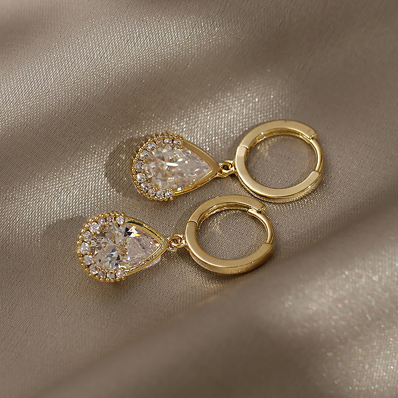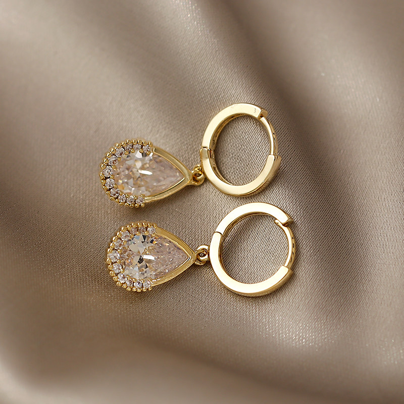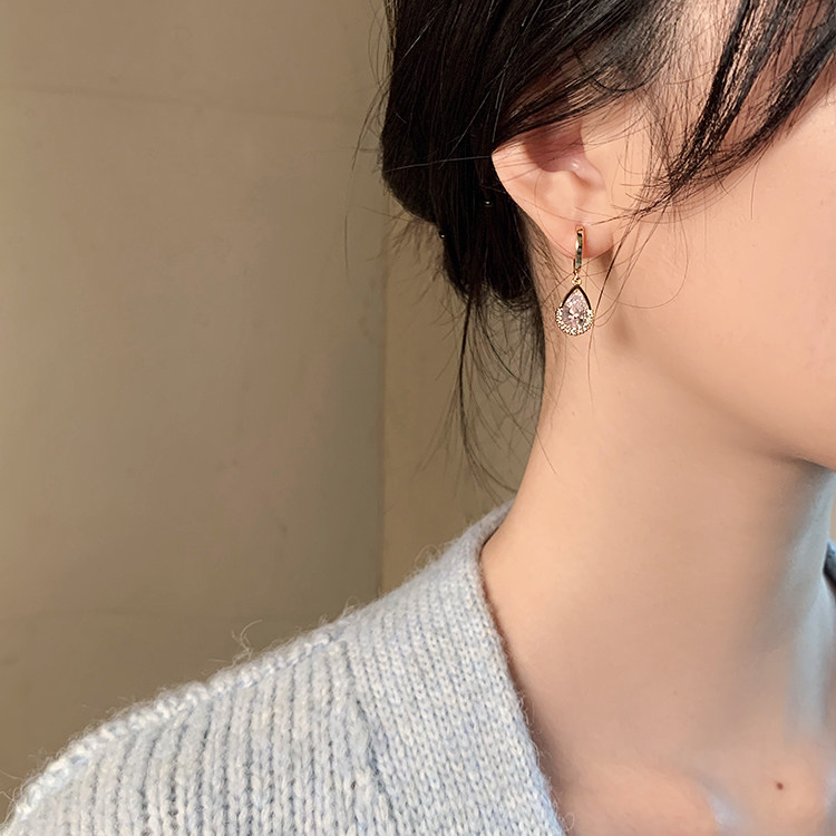 【真金电镀】 韩国高级感锆石水滴耳环潮女耳饰简约时尚百搭耳饰