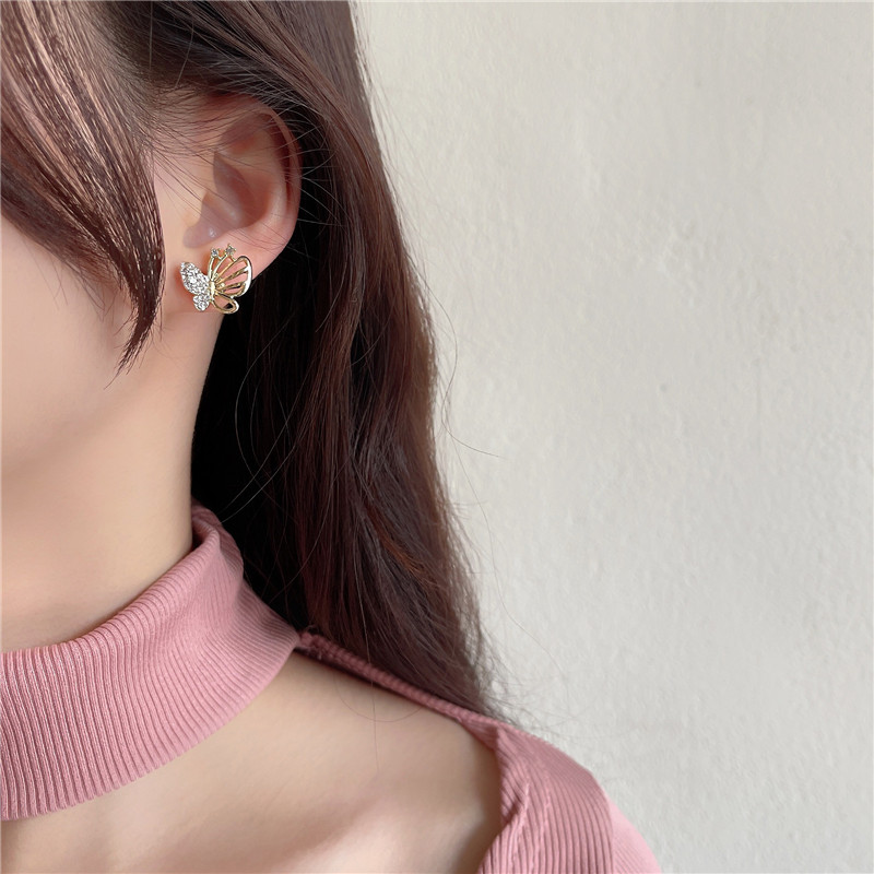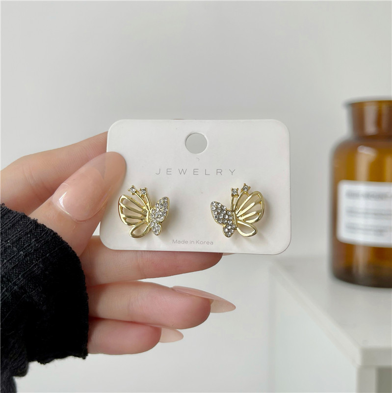 【真金电镀】 韩国气质优雅镂空蝴蝶耳钉女小众轻奢简约