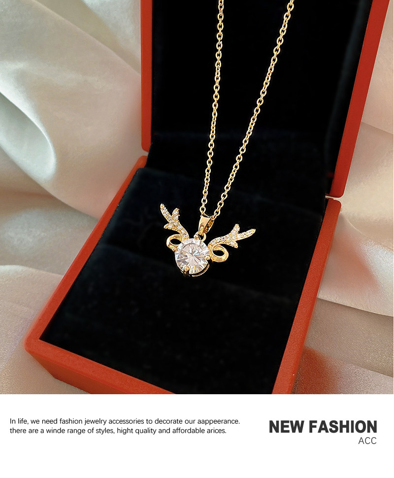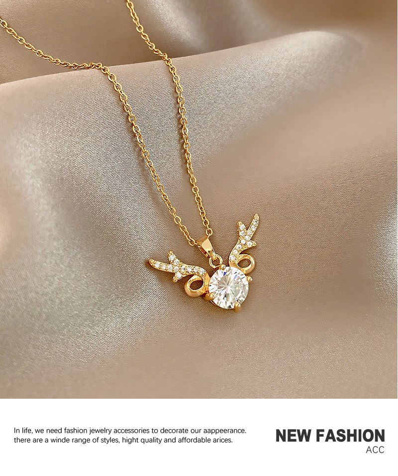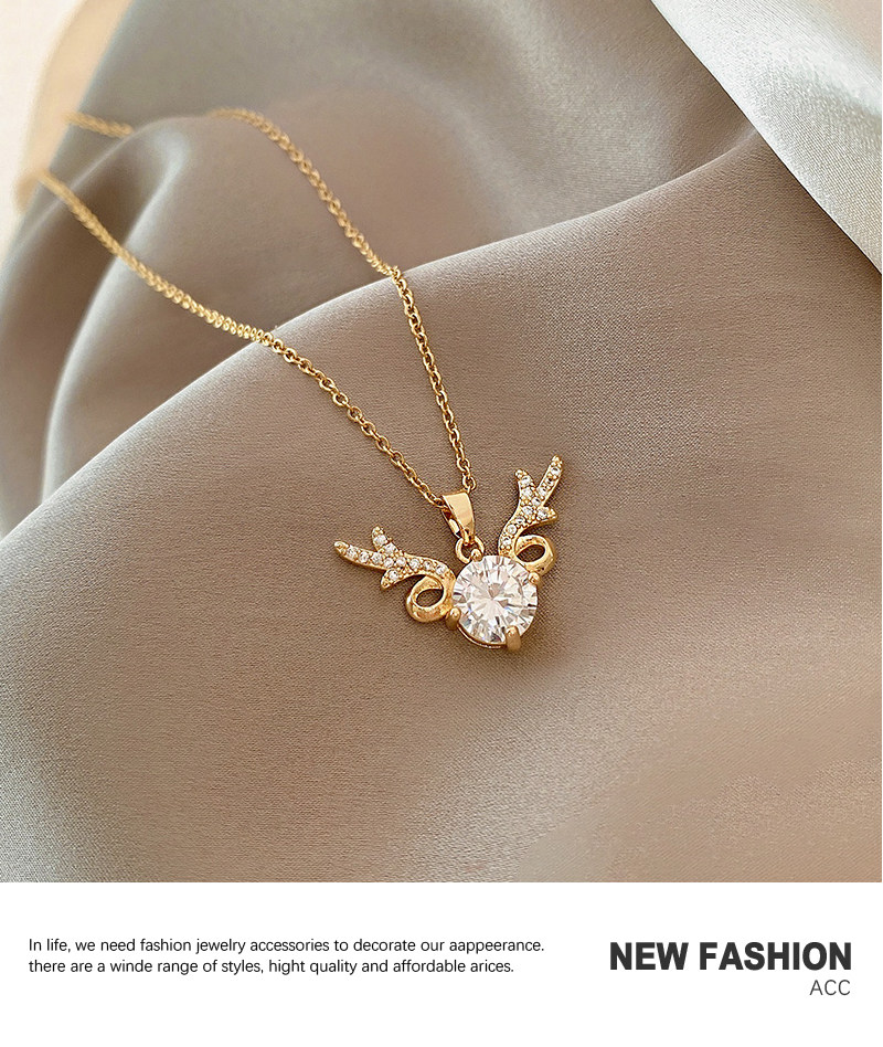【真金电镀】韩国鹿角项链新款女轻奢小众时尚简约森系麋鹿气质锁骨链颈链