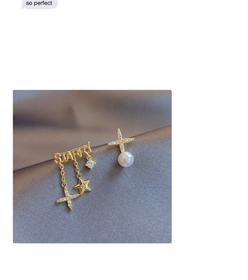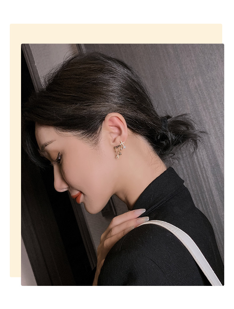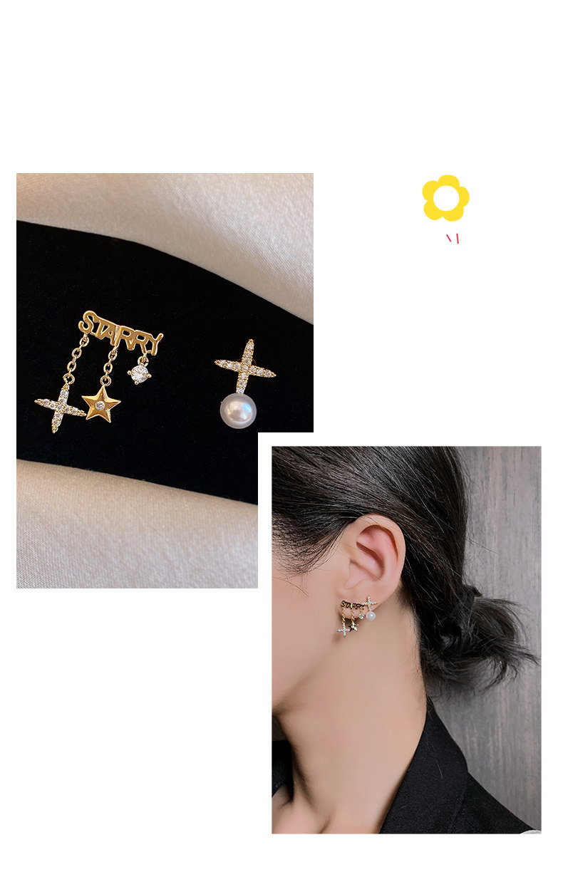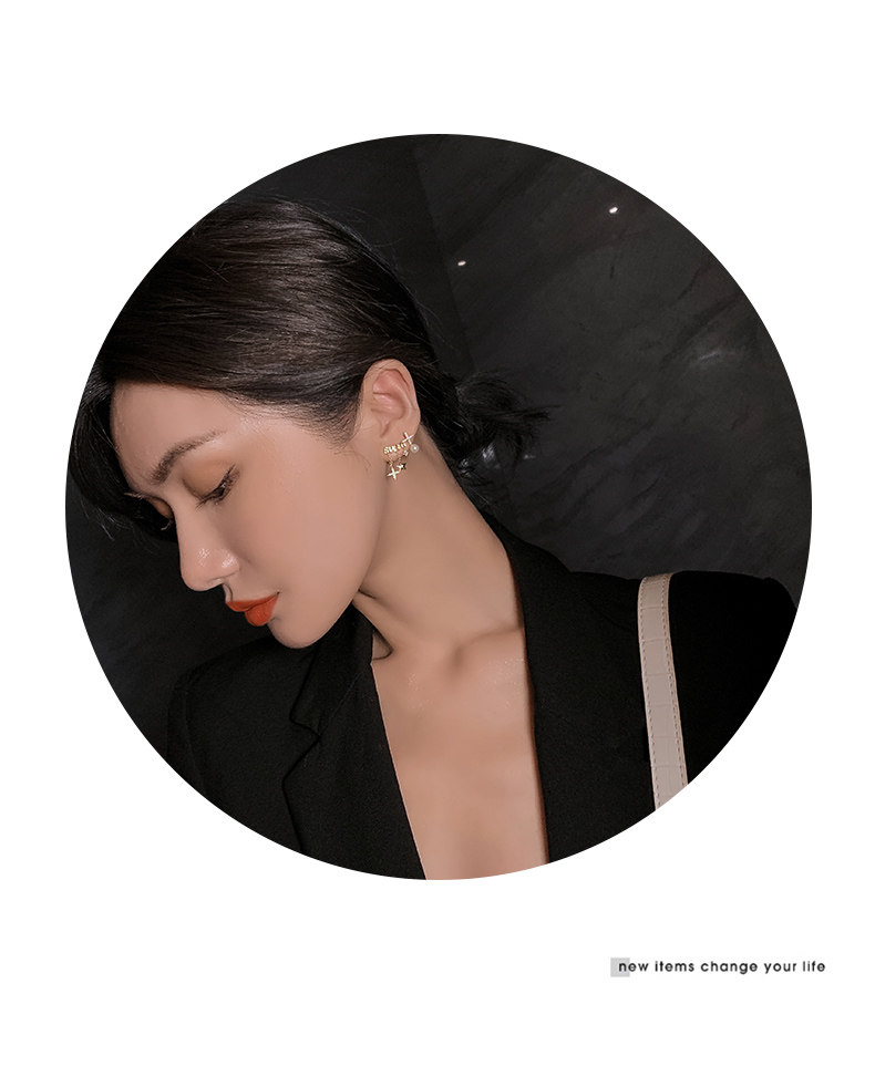 【真金电镀】 韩国精致闪钻十字架耳个性AB款字母仿珍珠时尚耳饰