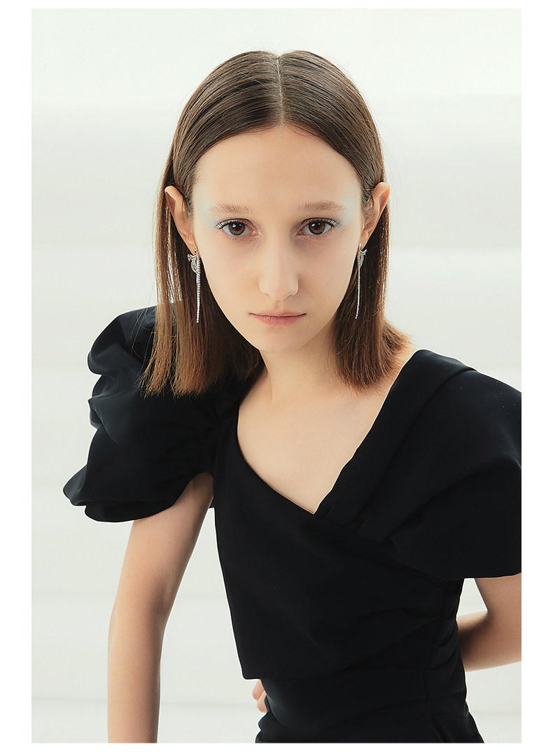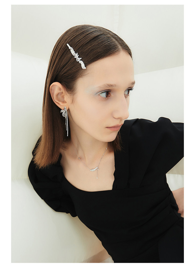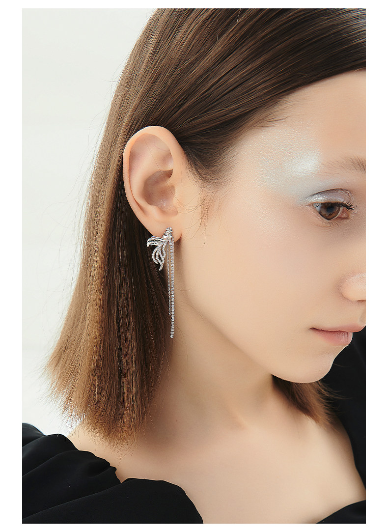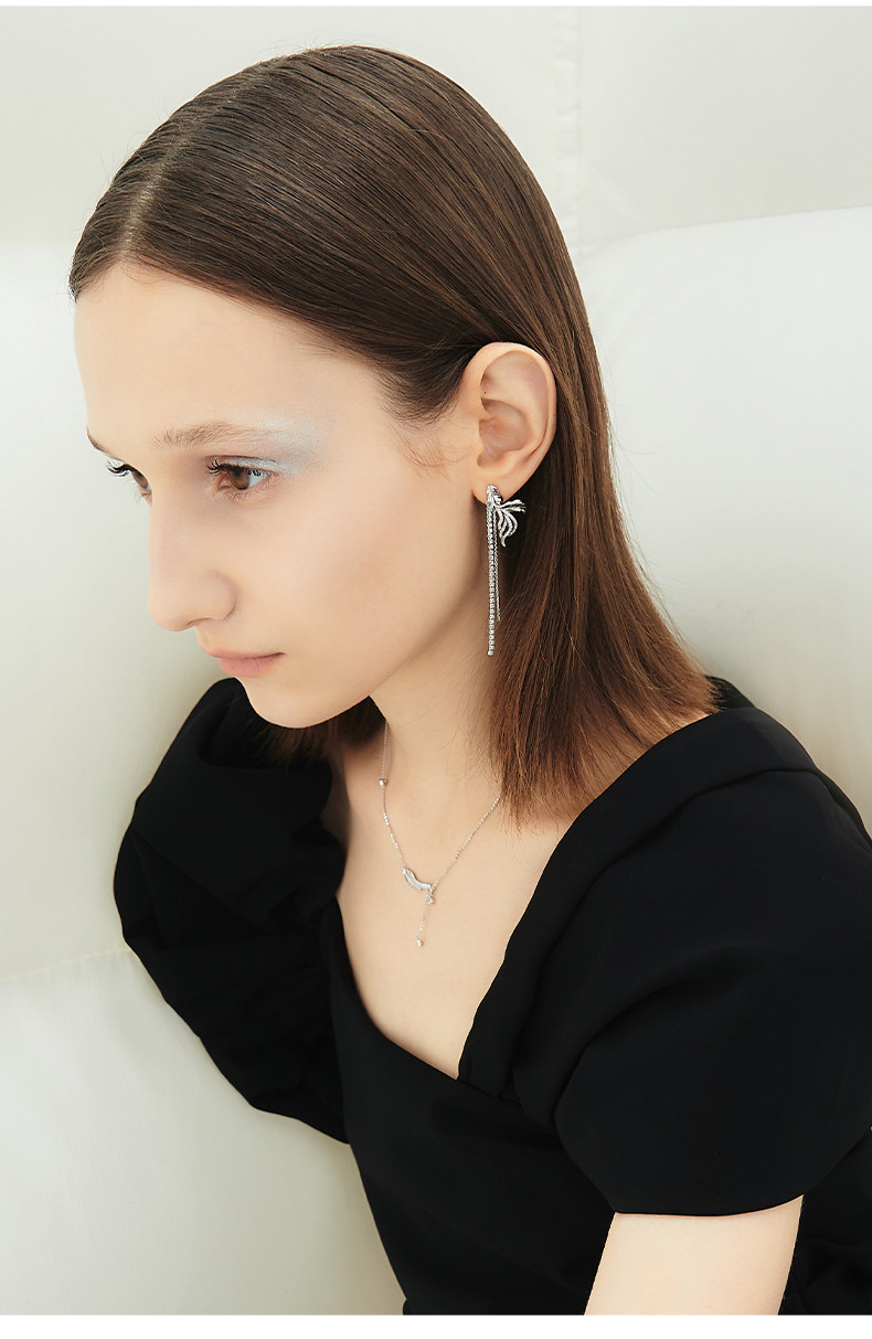 韩国黑天鹅流苏羽毛设计气质高级感耳钉耳饰
