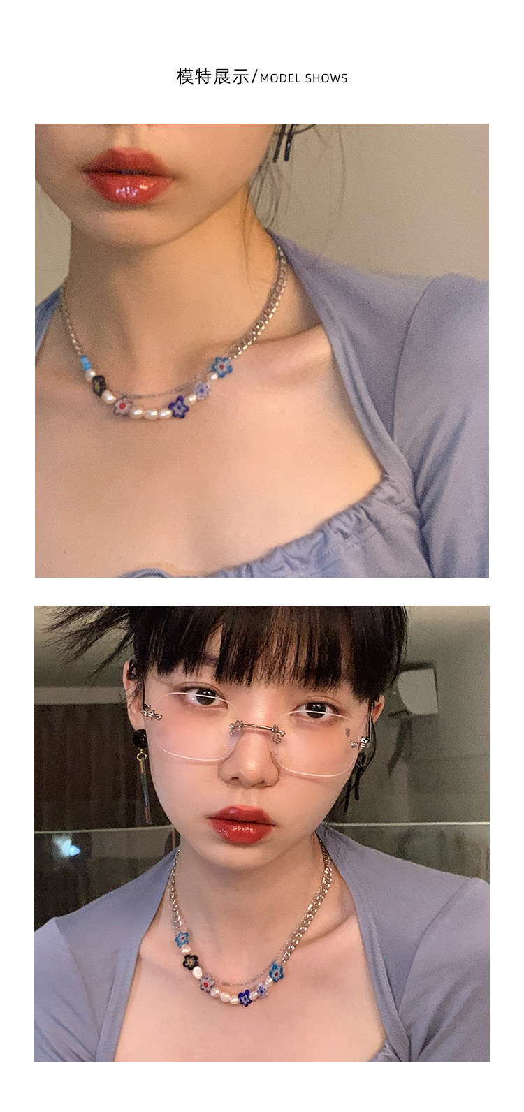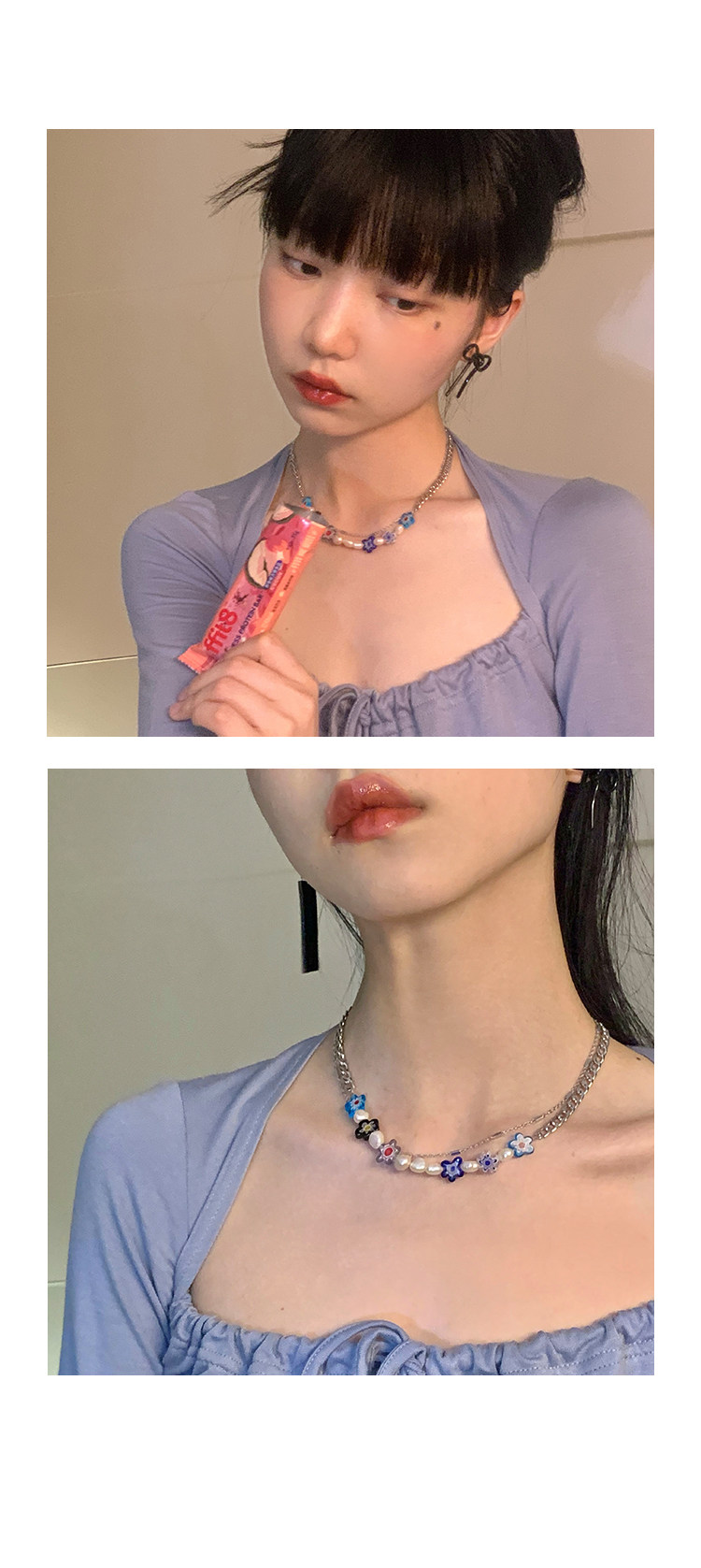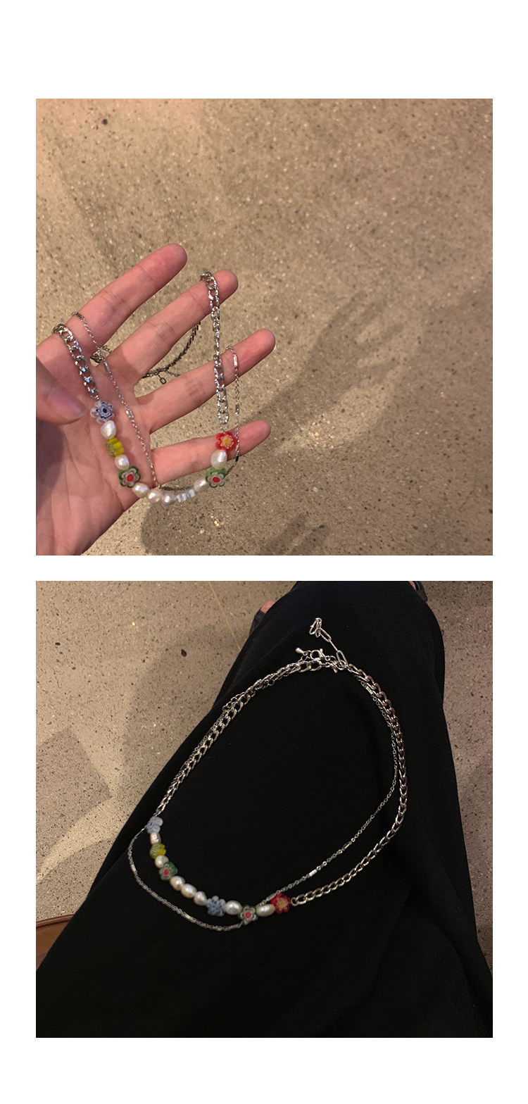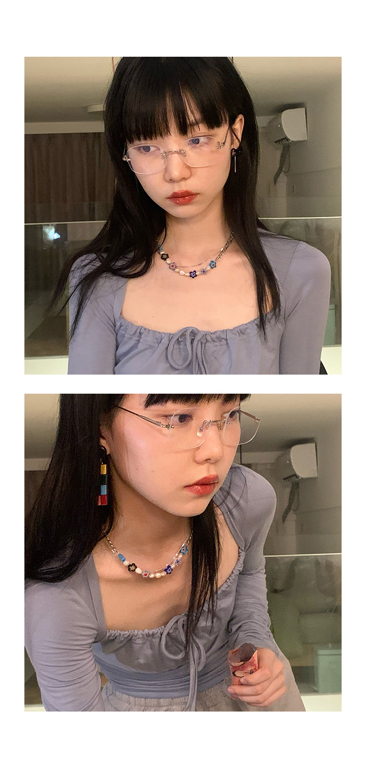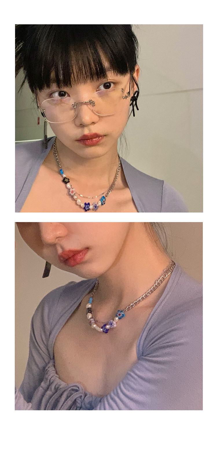 韩国彩色小花朵夏小众设计感冷淡风高级脖颈串珠锁骨链