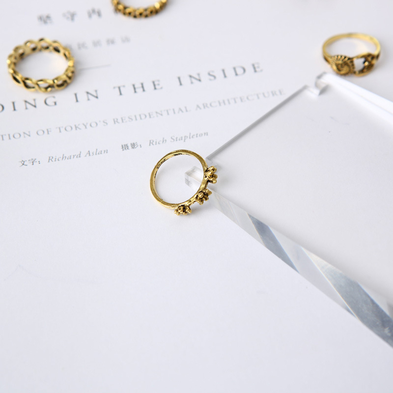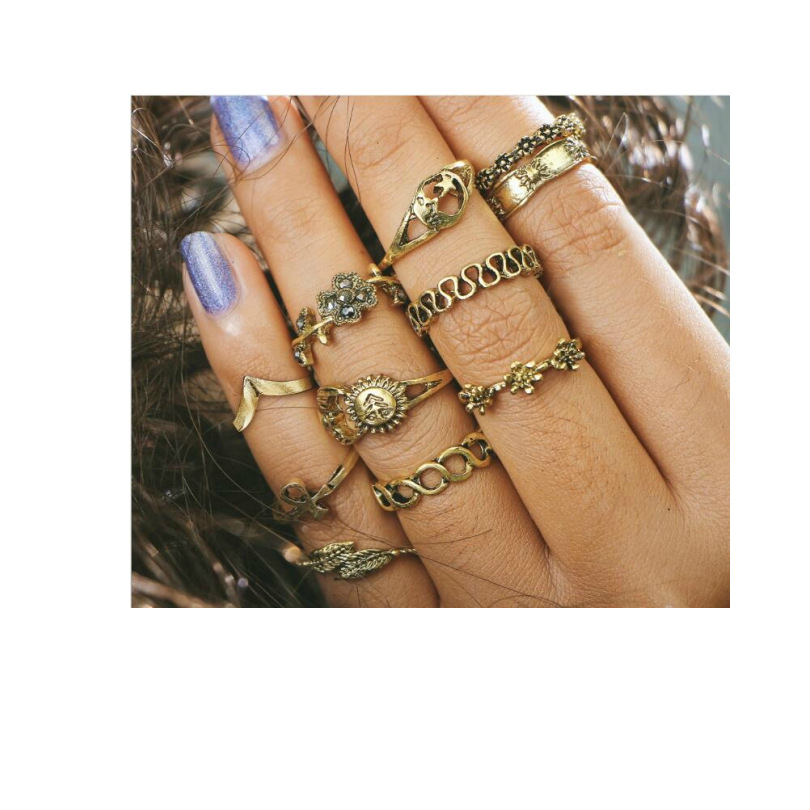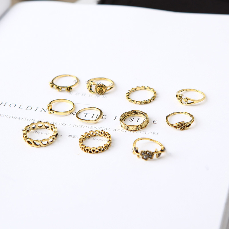欧美速卖通花朵镶钻叶子11件套戒指镂空月亮套装尾戒