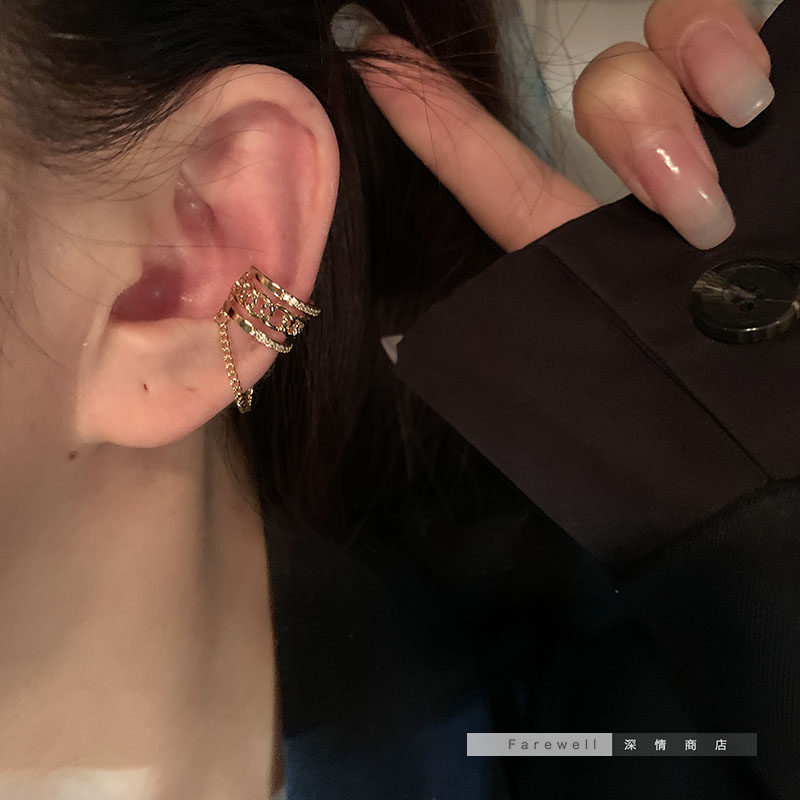 【真金电镀】韩国高级感冷淡风气质流苏茶系新款潮耳夹耳饰