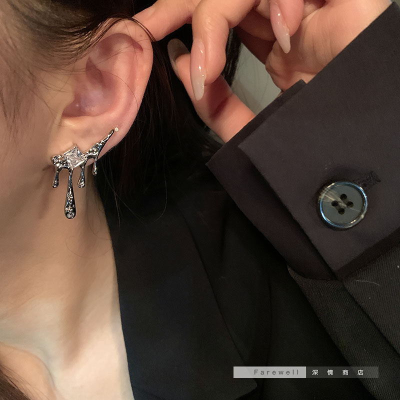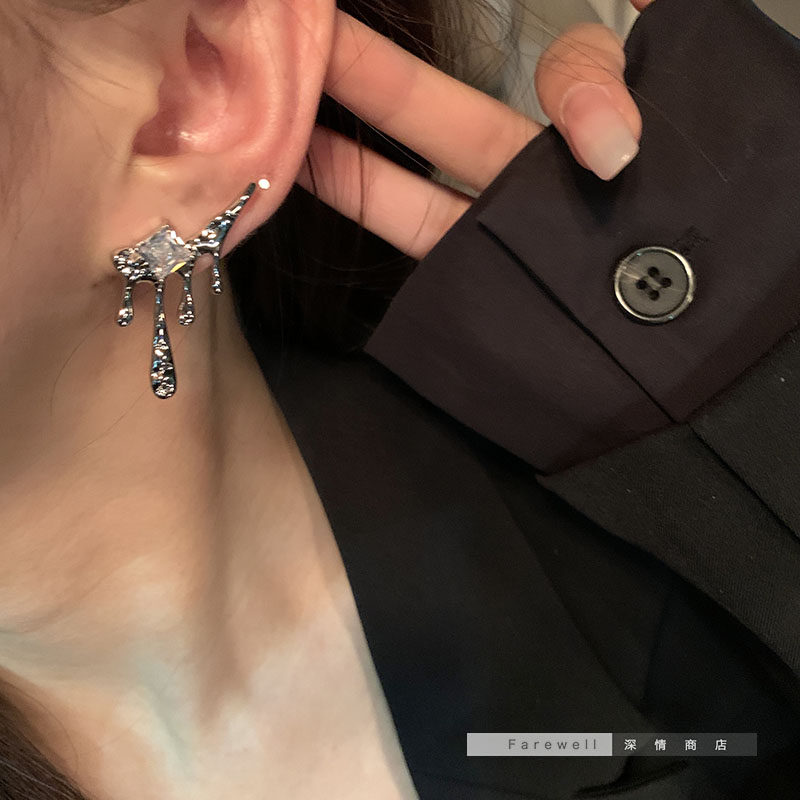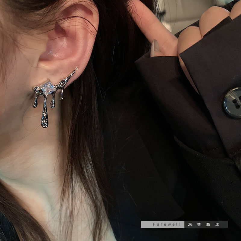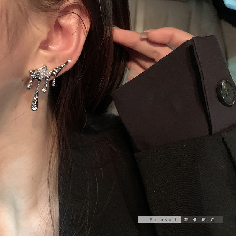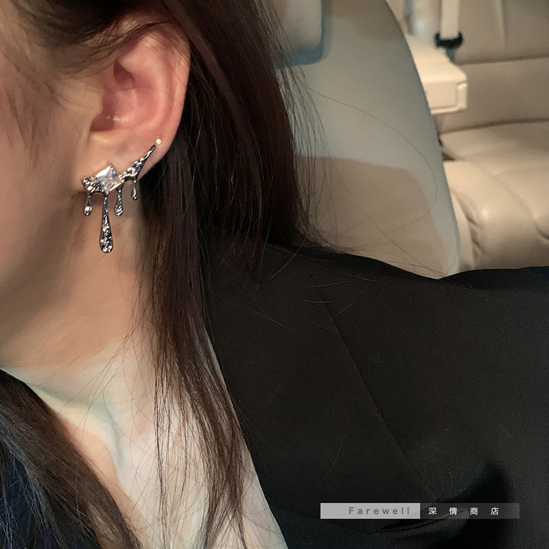 韩国水滴锆石独特新款潮冷淡风小众耳钉耳饰