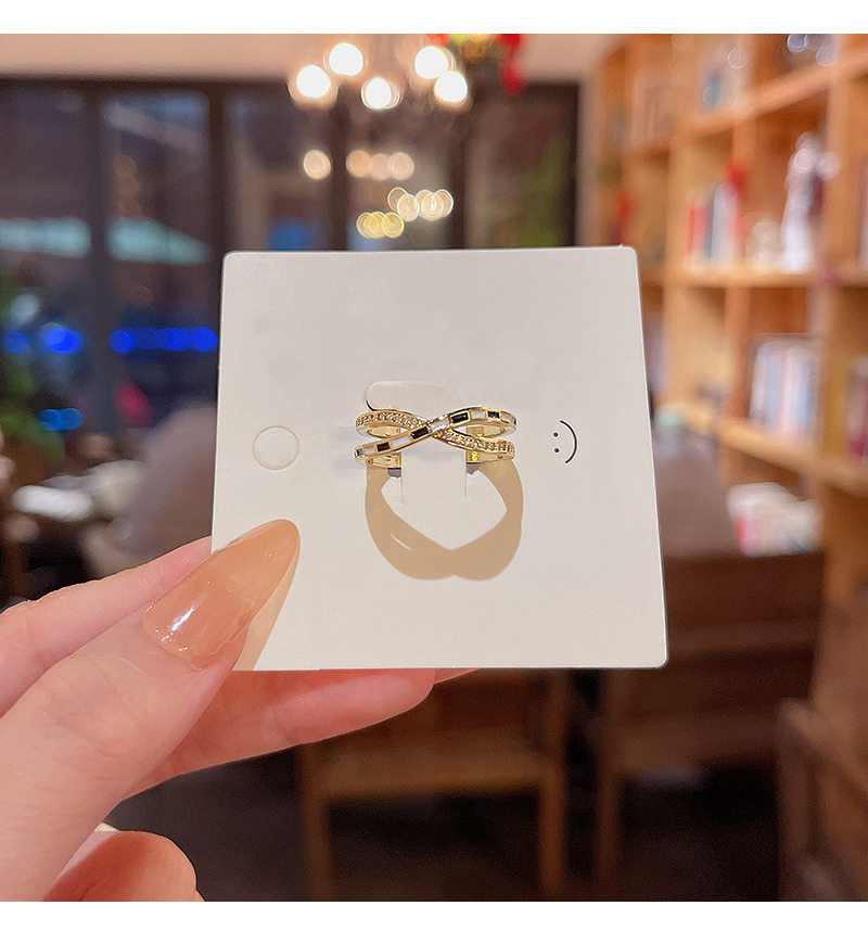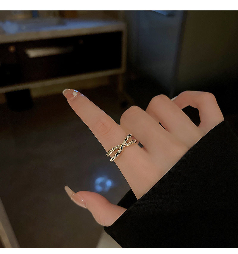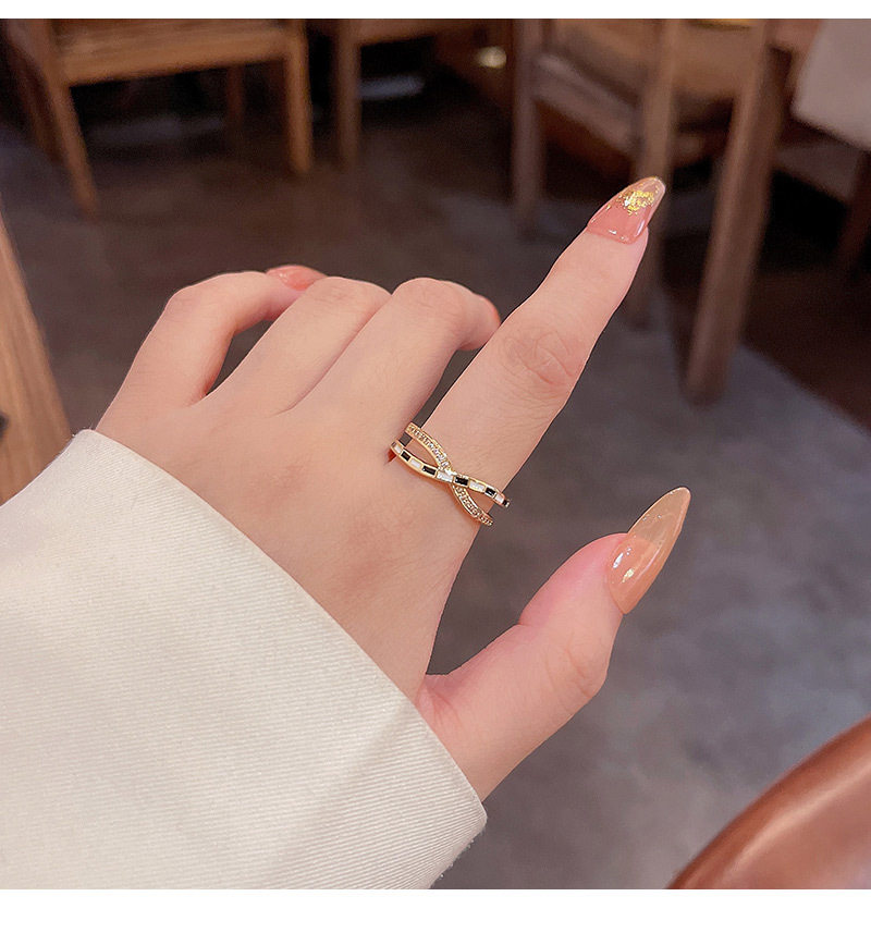 【真金电镀】韩国ins潮小众高级设计感交叉棋盘格新款微镶精致戒指【环保】