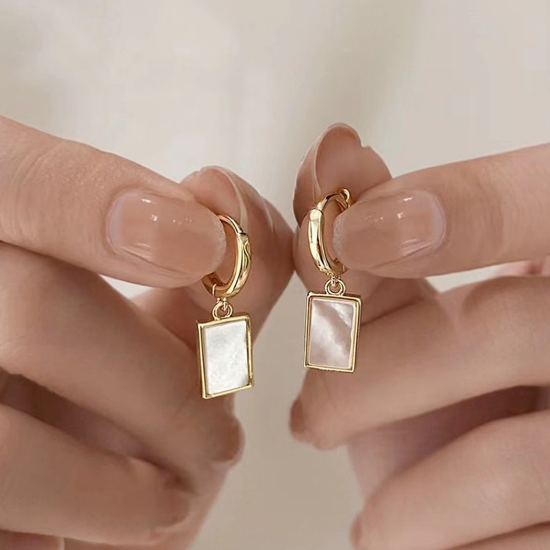 韩国方形贝母轻奢小众气质高级大气设计感耳扣耳饰