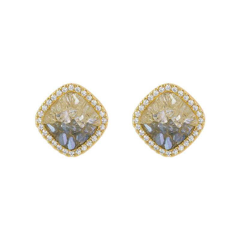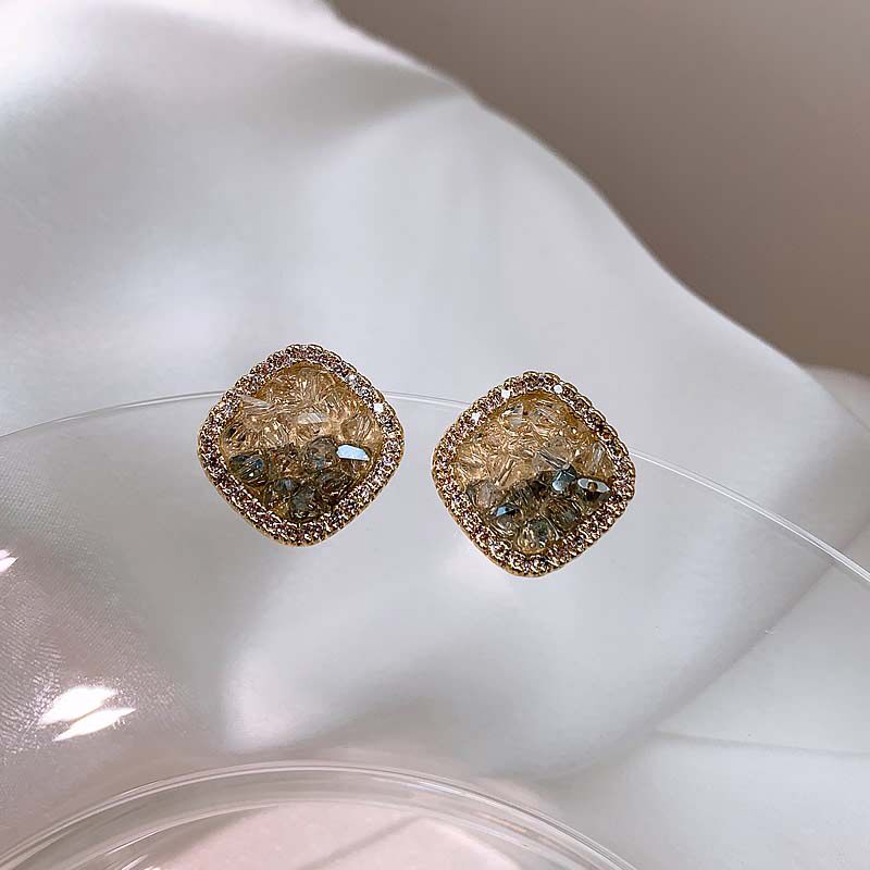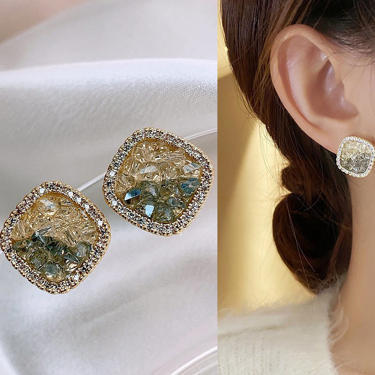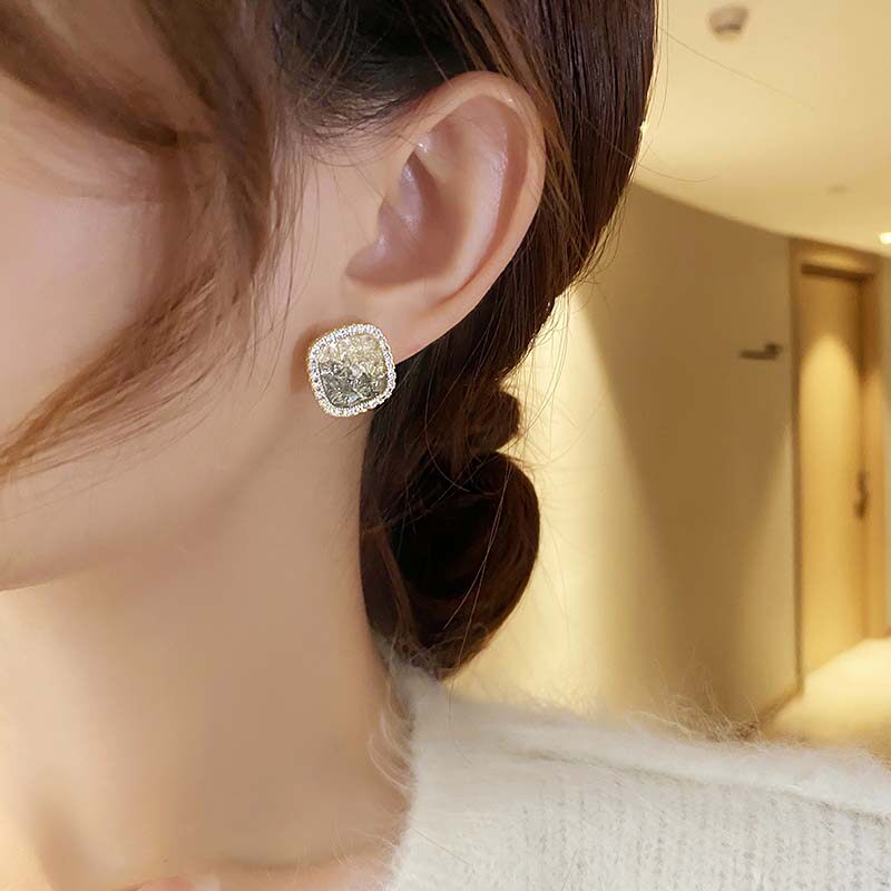 韩国方形几何水晶渐变小众轻奢气质时尚高级设计感耳钉耳饰