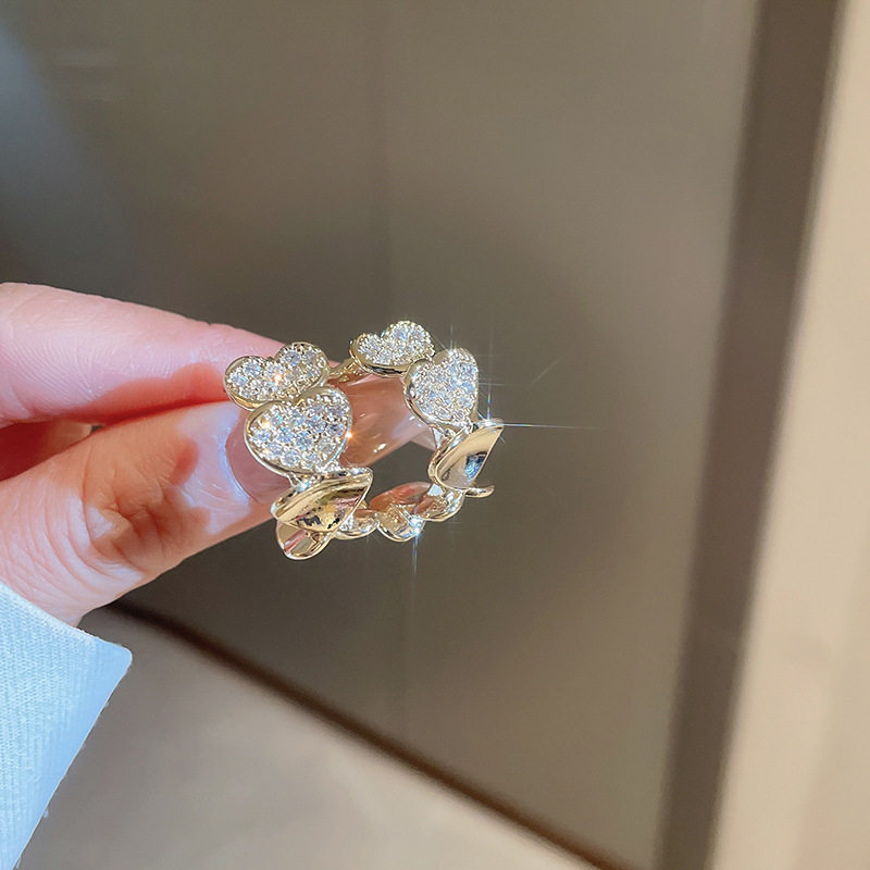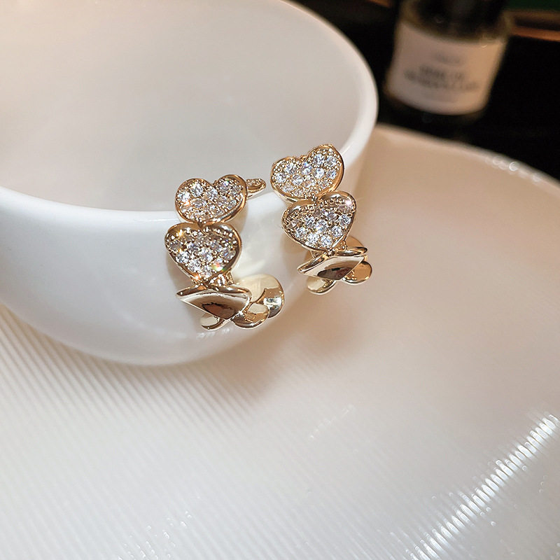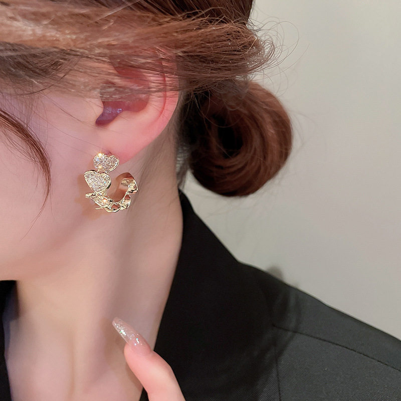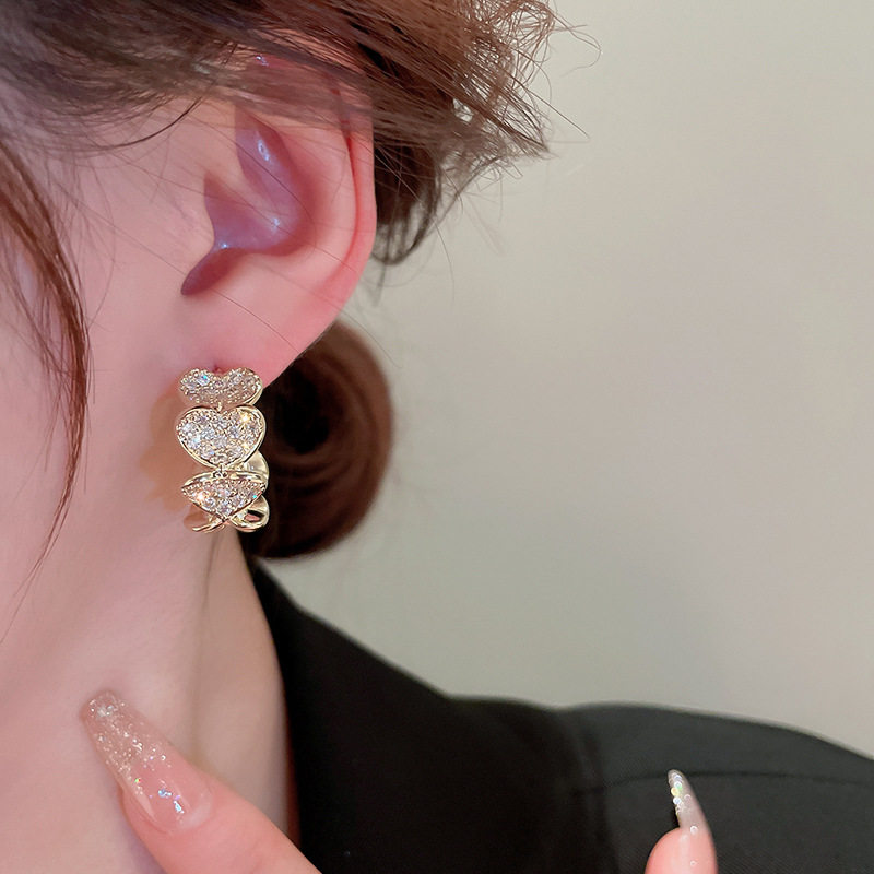 【真金电镀】韩国镶钻爱心C形时尚轻奢气质小众高级设计感耳钉耳饰【环保】
