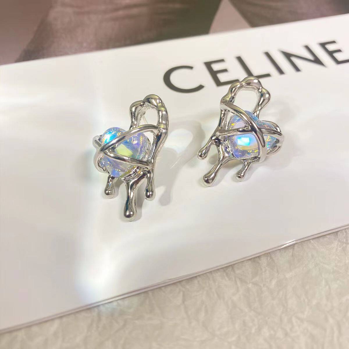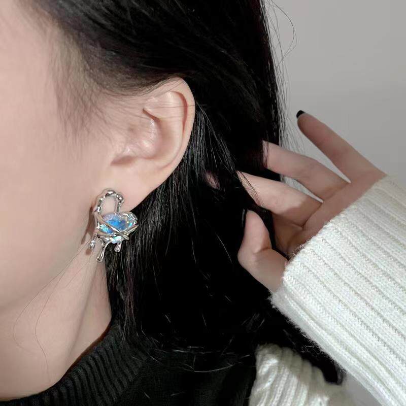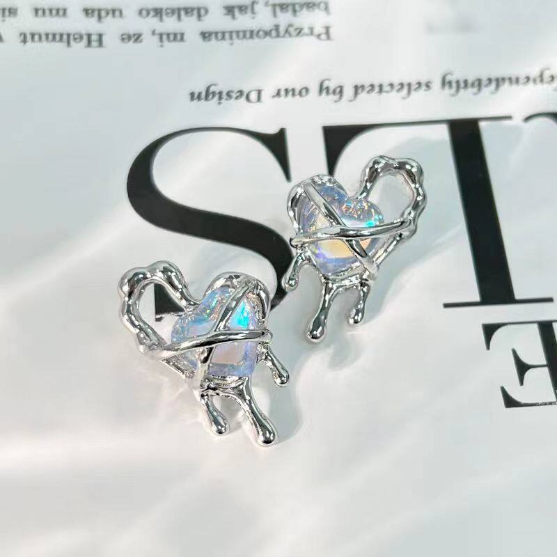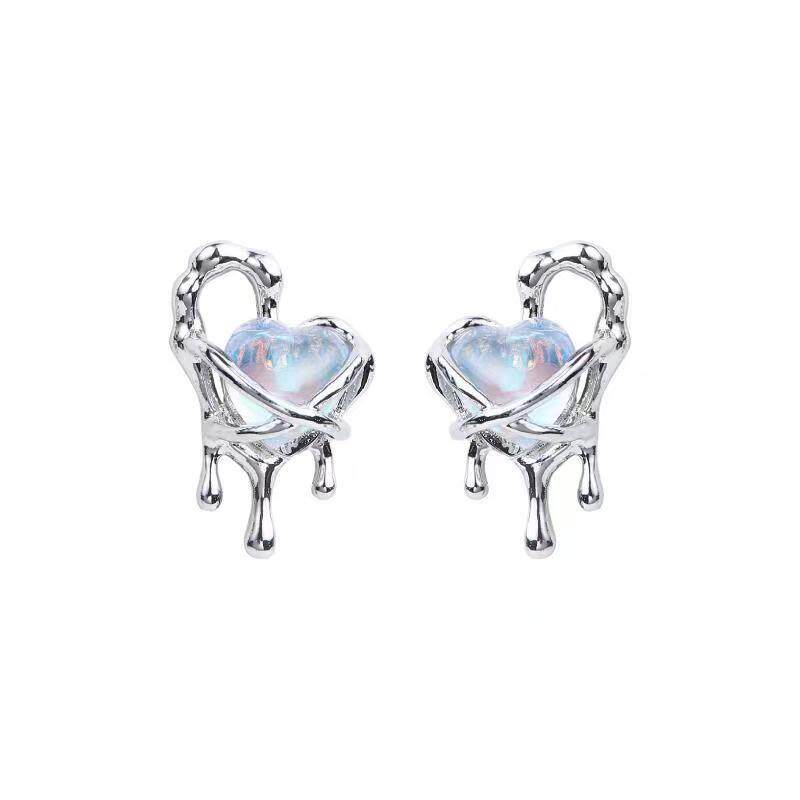 韩国甜酷风融化镂空爱心小众气质轻奢高级设计感耳钉耳饰