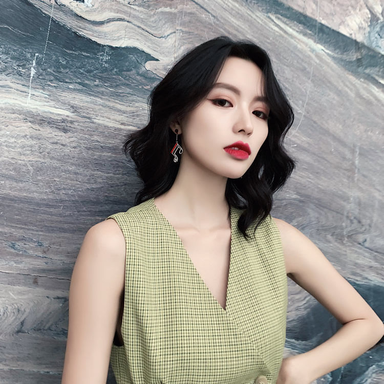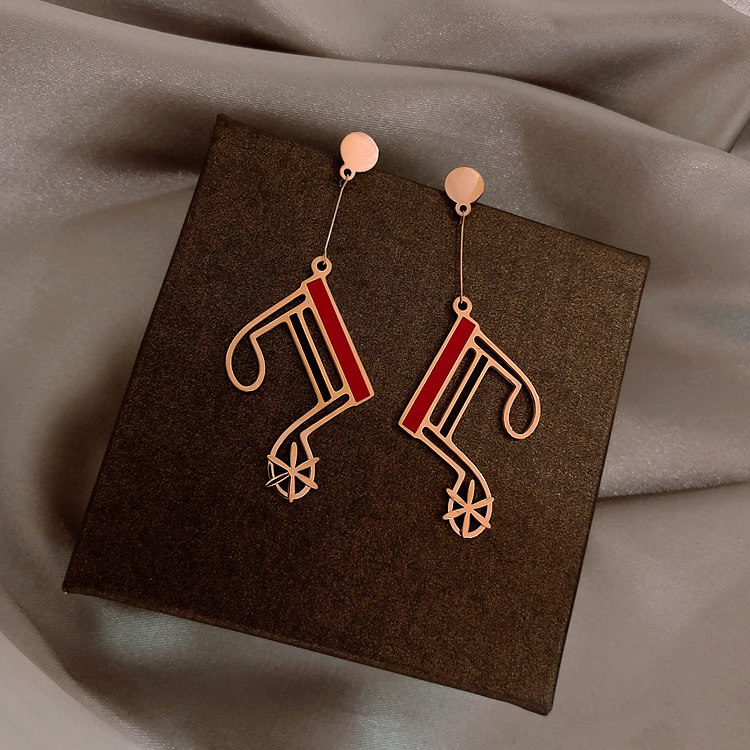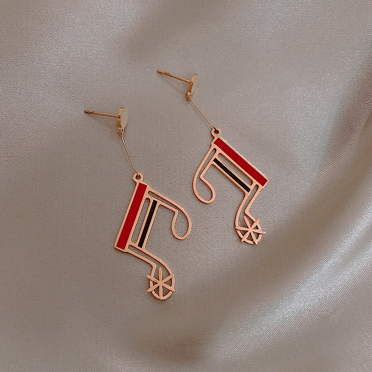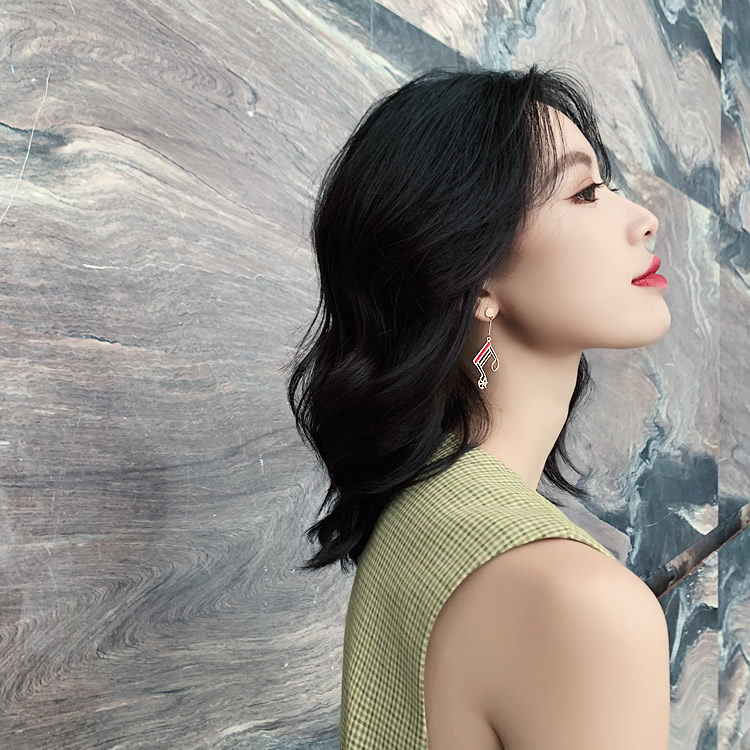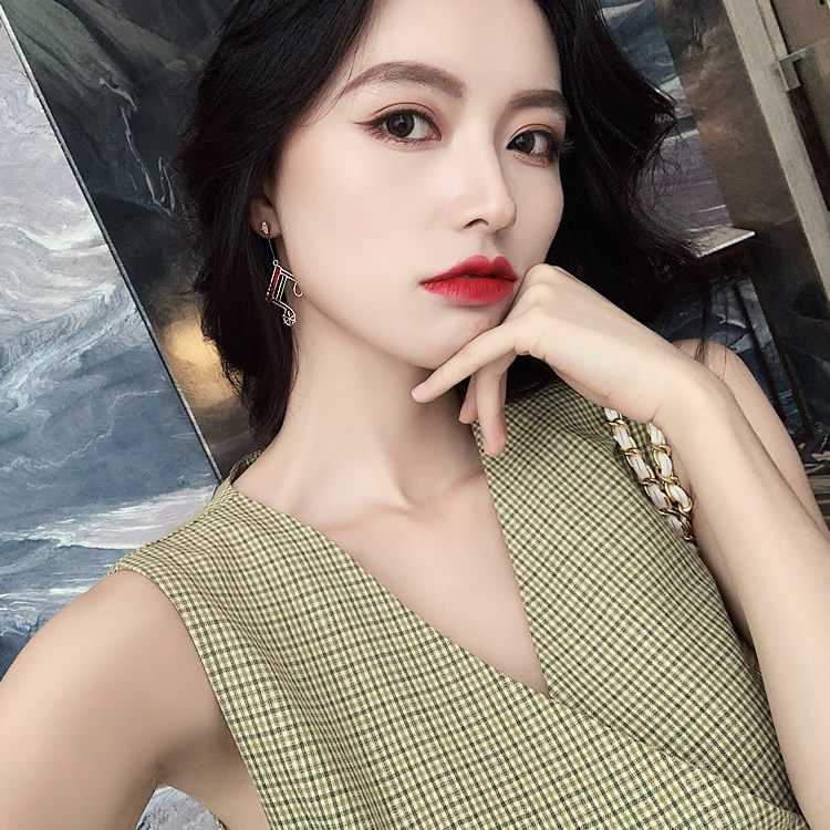 韩国美妙音符长红黑经典流线几何大气气质耳钉耳坠女