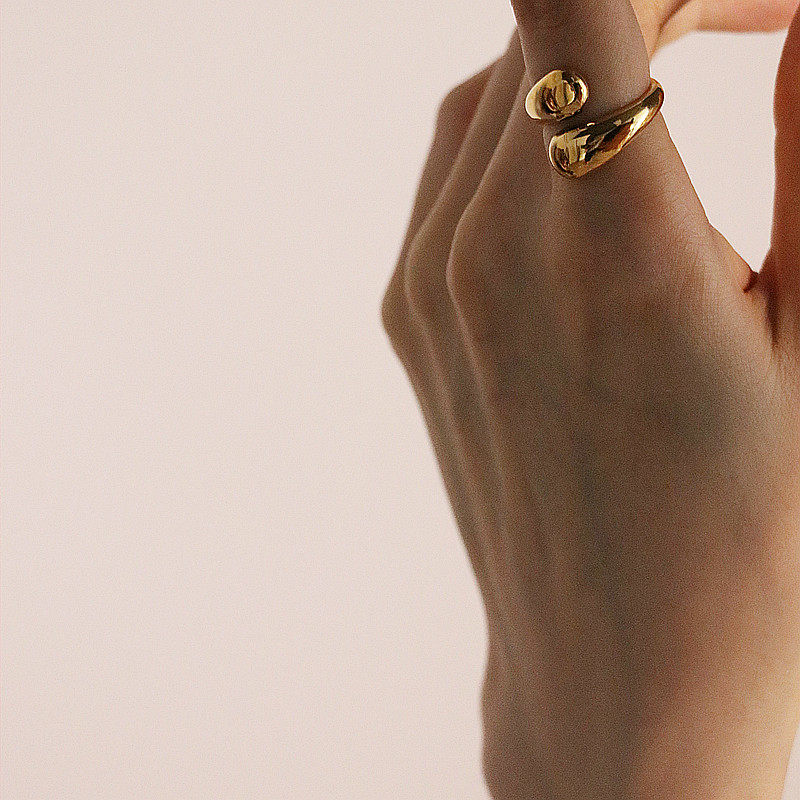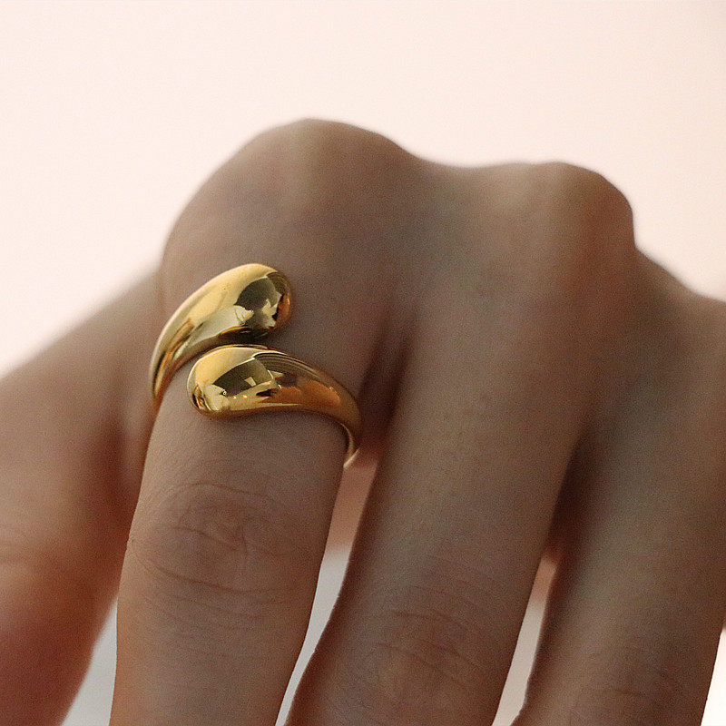 【真金电镀】韩国欧美小众简约气质水滴光面开口高级设计感交叉戒指【环保】
