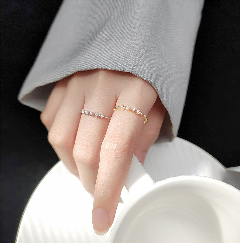 【真金电镀】排钻细指环女ins简约时尚高级感食指戒2023年新款小众戒指
