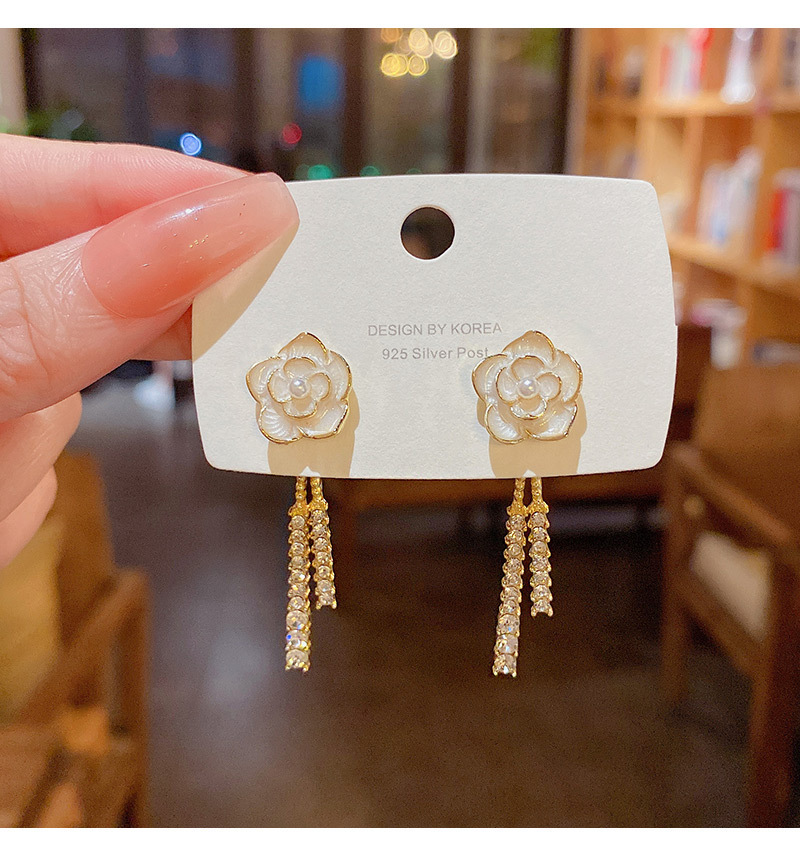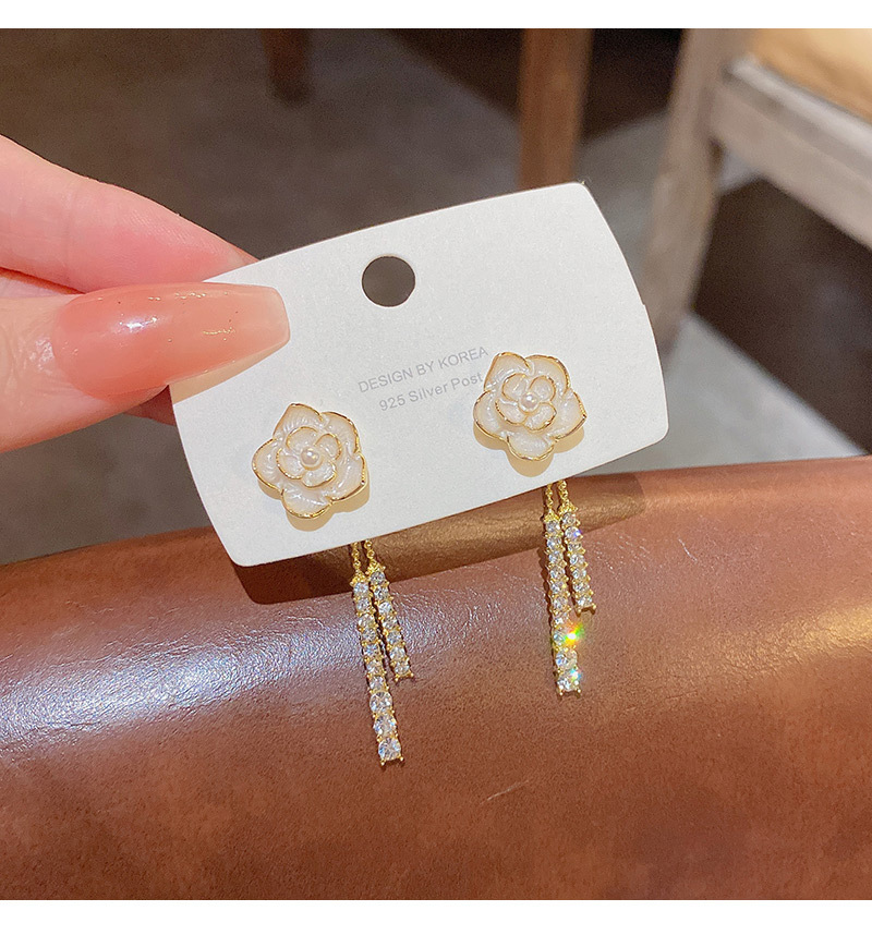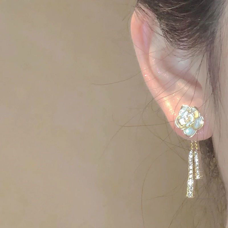 韩国复古山茶花一款两戴流苏气质轻奢小众高级设计感耳钉耳饰